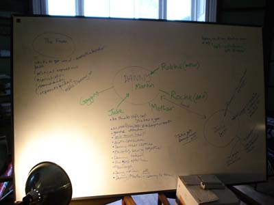 By the summer of 2005 I was asked to do some quick additional work on the first half of the story in preparation for my overhaul of the back half. Once that was turned in, we were, by my estimate at least, fourteen days of writing away from the holy grail we’d sought for so long. Roughly two hundred pages of screenplay that held water and all made sense as one huge story. And was maybe even entertaining to boot.