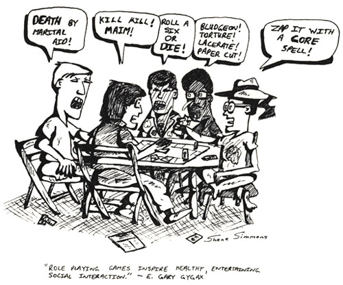 In the summer of 1987, a group of friends got together in a cabin in the woods to drink some beer and play some role playing games. One of them – me – sat out the game to take a photo and draw a picture of the event instead. Emru is the one supplying the much-needed ethnic diversity.