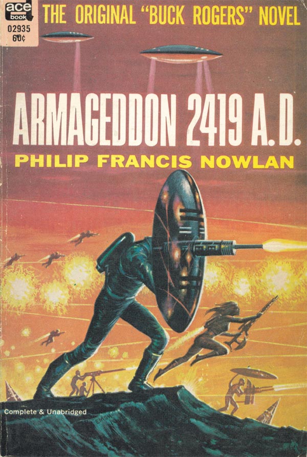 Image Posted by Shane Simmons Posted on October 24, 2013 Posted in Armageddon 2419 A.D. Comments Leave a comment Armageddon 2419 A.D. Armageddon 2419 A.D., Philip Francis Nowlan, Ace Books, New York, 1928, Reprinted 1962, Cover Art by Ed Emsh Size: 600 × 893 Post a comment or leave a trackback: Trackback URL.