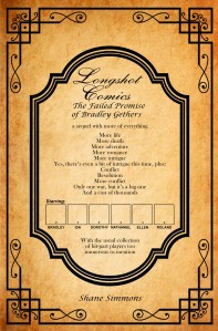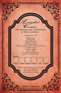 But in update news, I should mention that I had to bump up the price of the Longshot ebooks. This was my first time publishing a graphic novel through Amazon—the key word being “graphic.” That means lots of pictures taking up a lot more space than mere text. And I’d forgotten to account for Amazon’s distribution fee for larger file sizes.