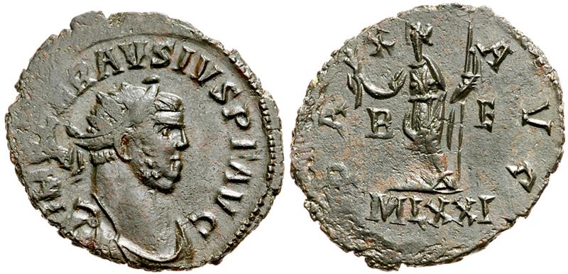 This is actually one of the good examples of an antoninianus from usurper Carausius. His coins are generally so distorted and ugly, they’re indistinguishable from contemporary barbarian imitations of Roman coinage.