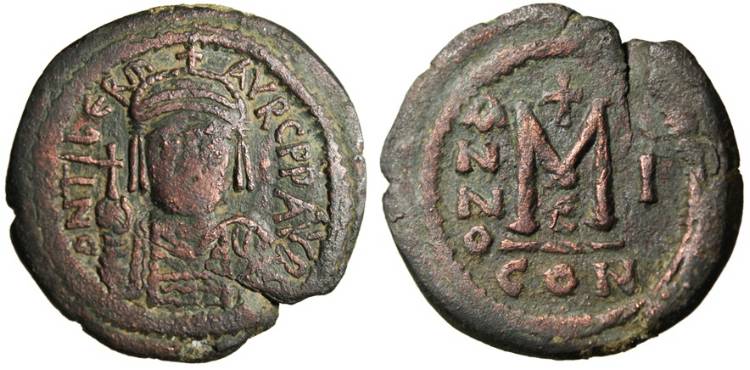 By the time the Byzantines came along, the currency was absolutely pathetic. Most coins were tiny, sad little lumps of bronze called nummi, unidentifiable even when freshly struck. Bags of them were required to make purchases of basic goods and services. It was Anastasius, the first emperor to come to power post-Leonid dynasty in 491 CE, who finally sorted things out and stabilized the coinage system with a bunch of new denominations, most notable a large follis that was worth 40 of the discontinued nummi.